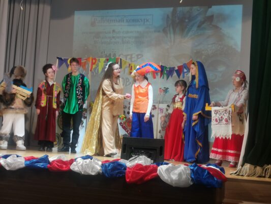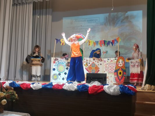 Сцена в этот день стала настоящим пространством диалога культур и традиций. Россия веками крепла силой сплочённости своих народов: от северных тундр до южных степей, от Балтики до Тихого океана — сотни национальностей живут в нашей стране. Каждый народ бережно хранит свои обычаи, и в то же время все вместе они создают единое культурное наследие, которое объединяет нас.